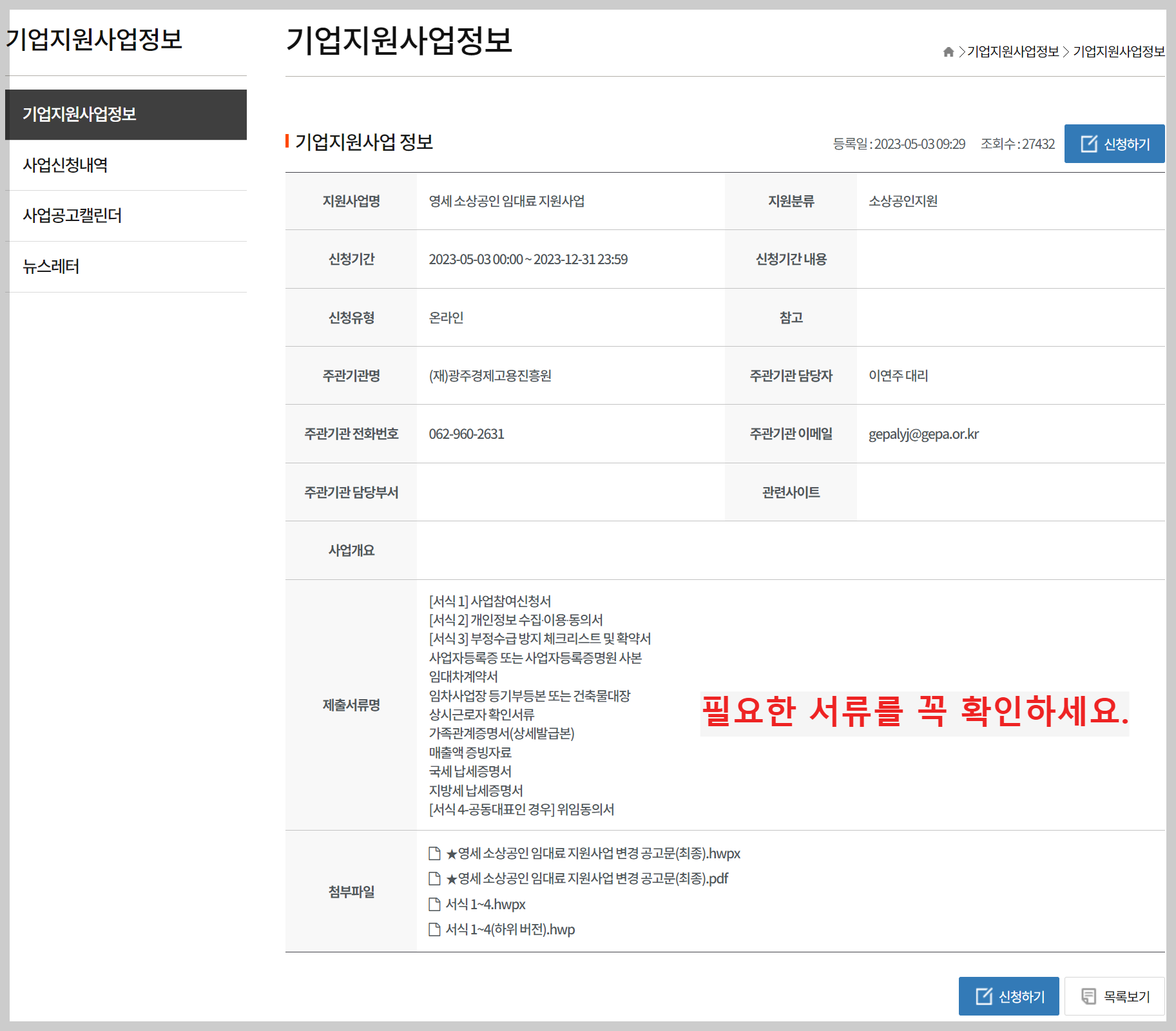 신청방법은 광주광역시 기업지원시스템 : https://www.gjbizinfo.or.kr 홈페이제 접속하여 지원하실 수 있습니다.