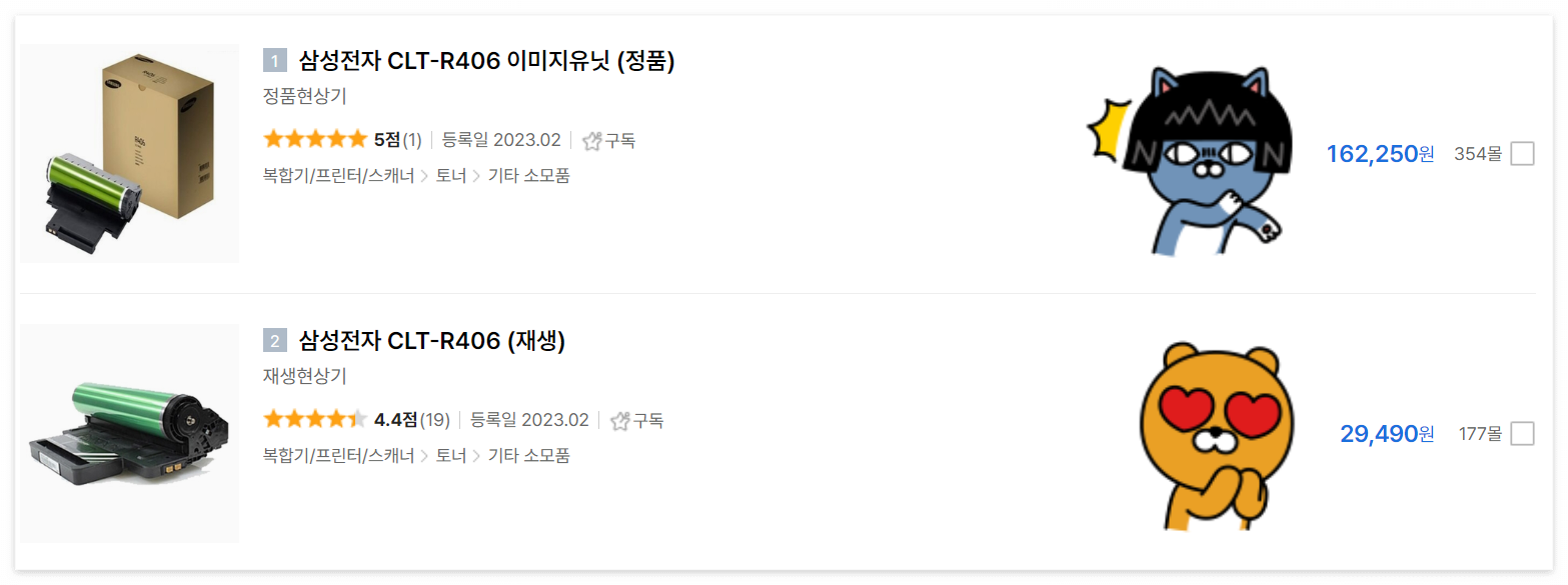 삼성전자 정품의 이미징 유닛의 가격은 저렴하지 않습니다.