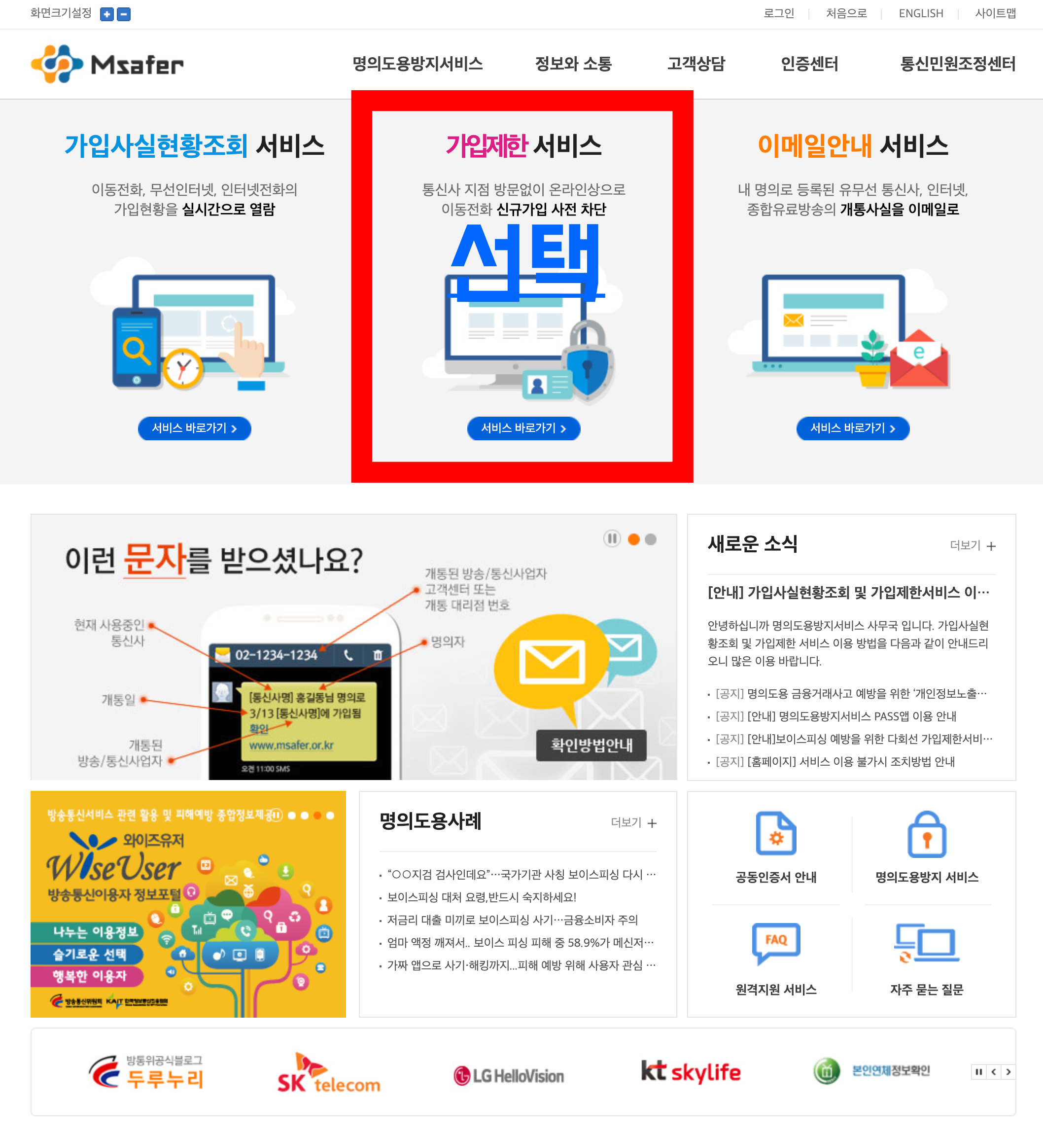 우리가 잃어버린 신분증은 다양한 용도로 사용이 가능합니다. 그중에 가장 쉬운 건 잃어버린 신분증으로 휴대폰을 개통할 수 있습니다. 불법으로 개통된 휴대폰은 온갖 모든 범죄의 용도로 사용이 가능합니다. 이런 불법 사용을 방지하기 위해 가입을 제한할 수 있는 사이트가 있습니다.