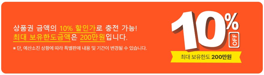 - 10% 할인을 받을 수 있으므로, 10만 원 충전할 경우 9만 원을 지불하면 됩니다.
