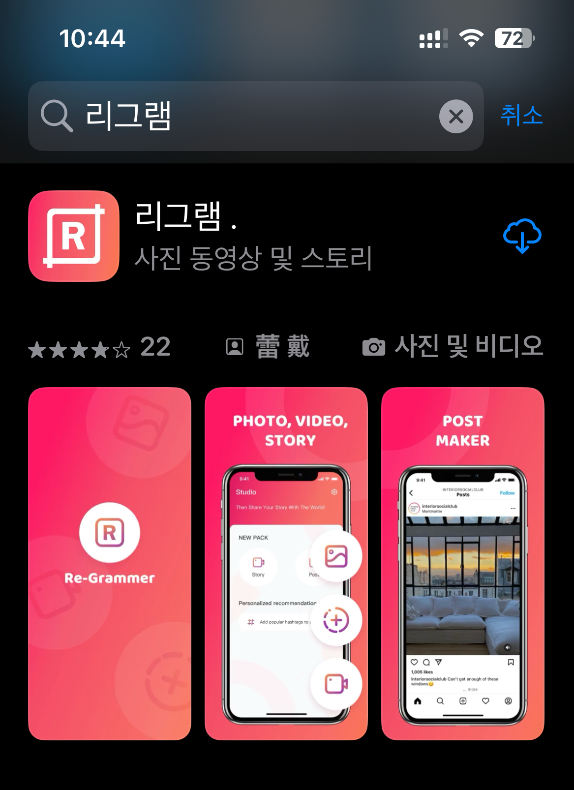 리그램을 유명한 앱들을 직접 설치하여 리그램 하려고 했지만 모두 트라이얼 버전으로 일정한 횟수 사용 후 유료로 전환되거나 구독을 해야 이용할 수 있었습니다. 리그램을 많이 한다면 구독방식이 좋겠지만 사용빈도가 높지 않다면 유료를 이용하는 것은 생각해봐야 합니다.