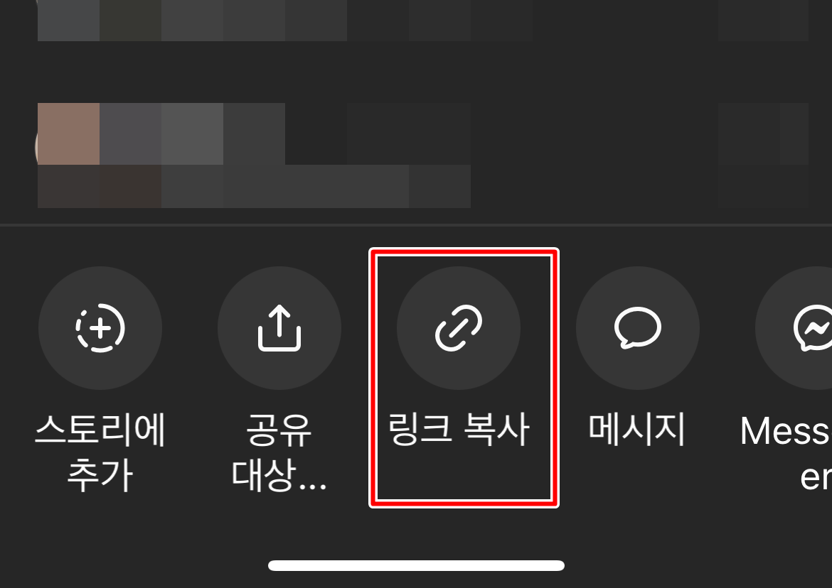 4. '링크복사'를 클릭하여 게시물의 링크를 복사해 줍니다.