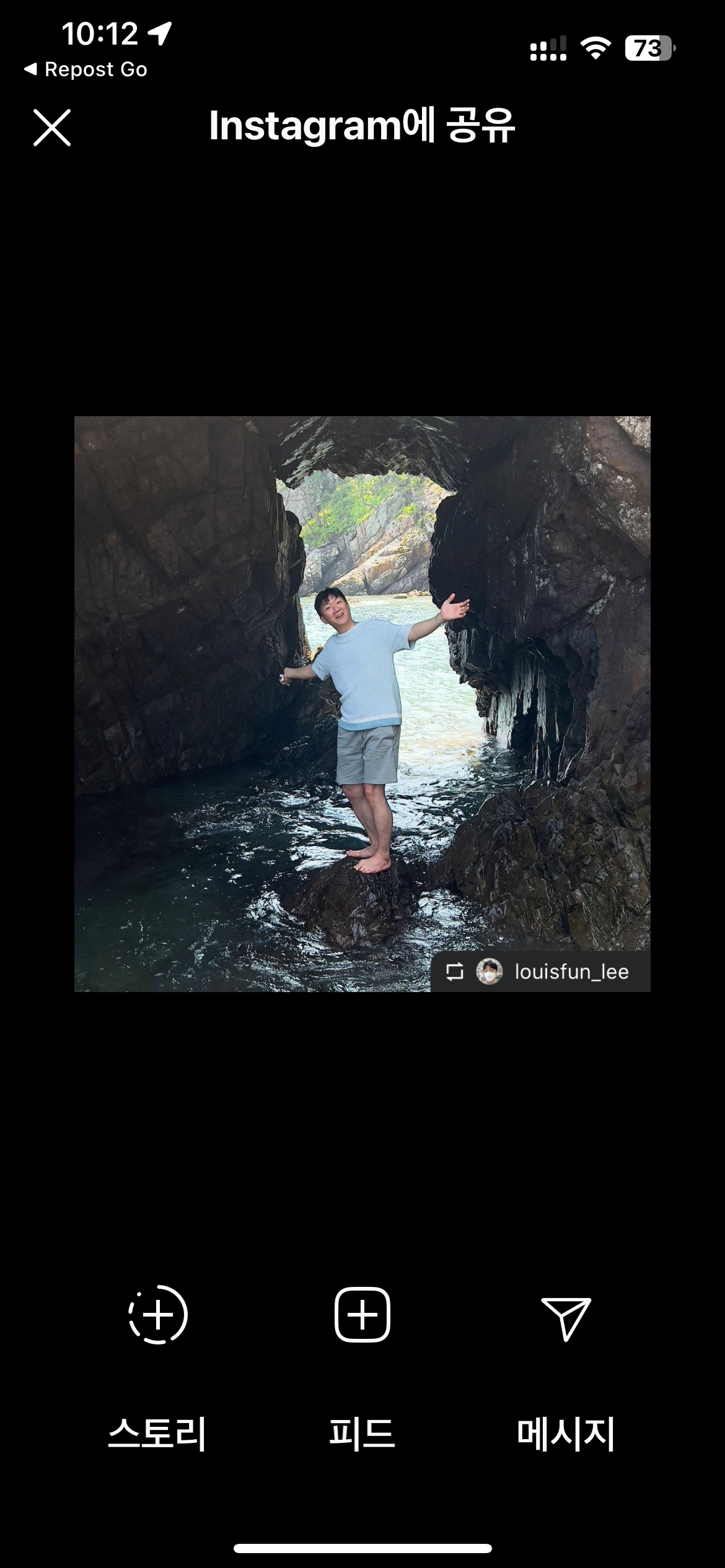 스토리 또는 피드로 게시물을 리그램 할 수 있습니다.