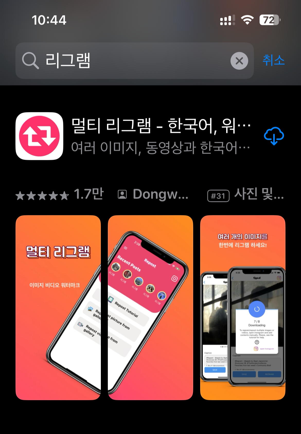 리포스트 앱을 이용한 리그램 방법