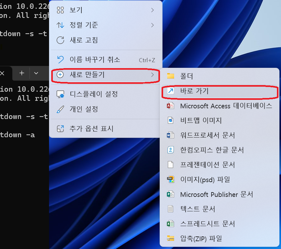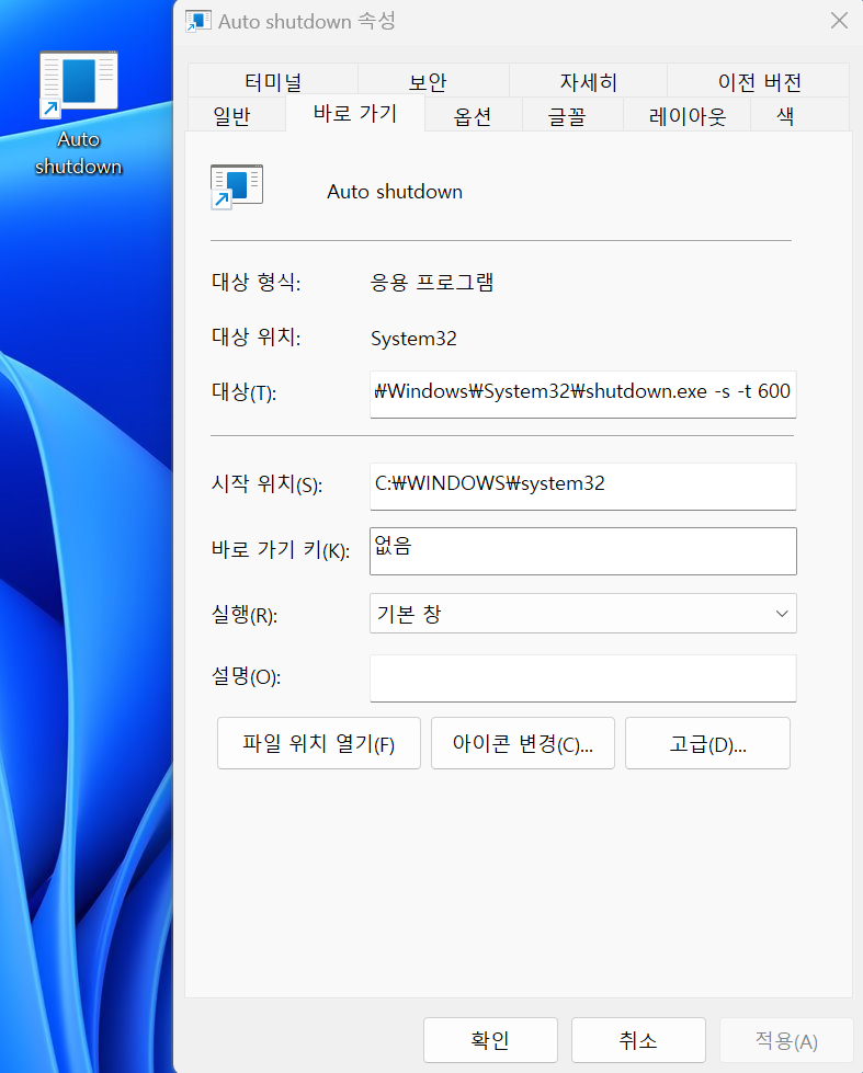 자동 종료 명령어를 활용한 아이콘 생성