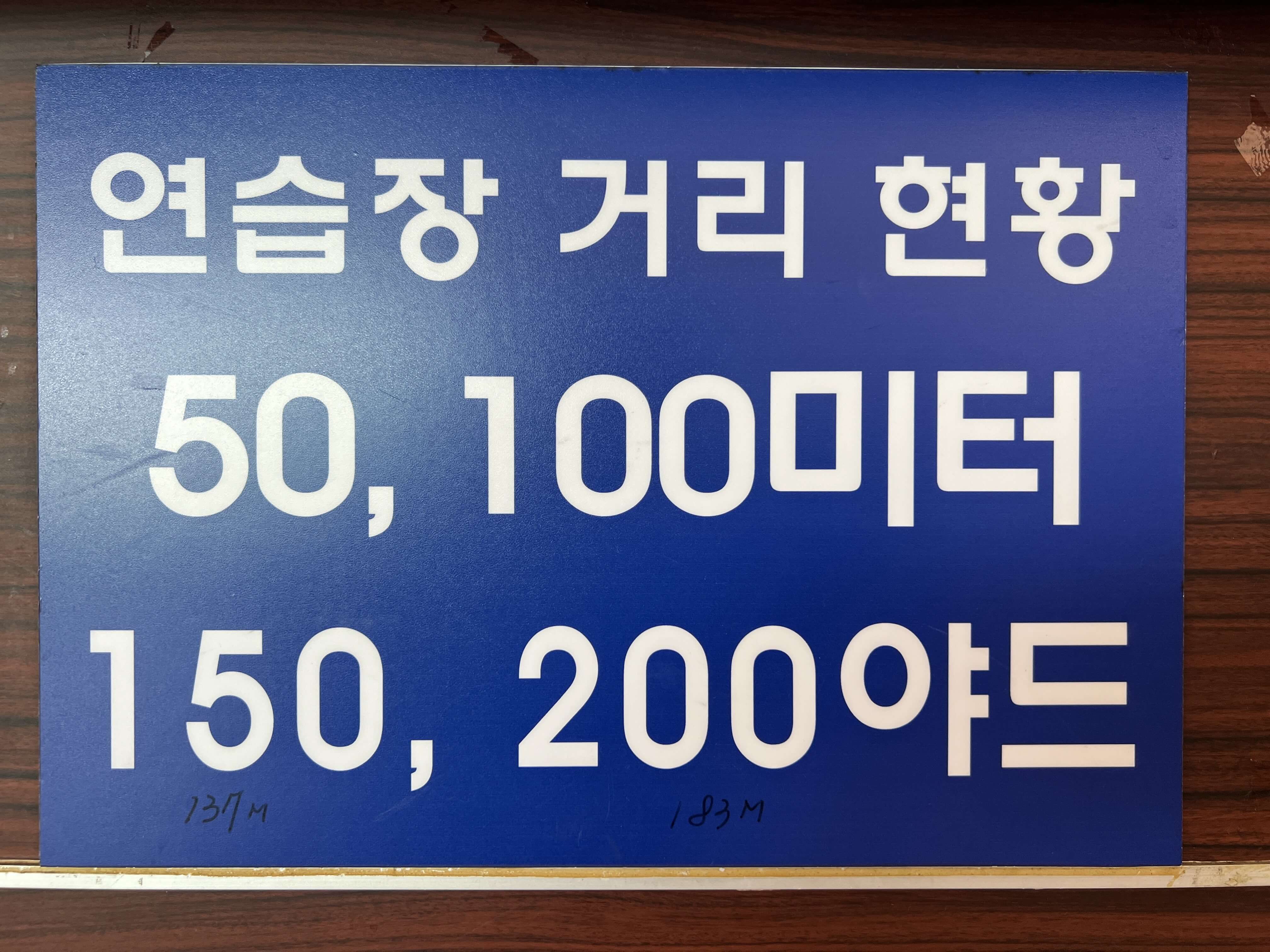표시된 50과 100은 미터(M) 단위지만 그 이후의 표기된 150과 200은 야드(yard)의 단위로 구성되어 있습니다. 누군가 거리를 환산해 놓았네요. 150야드는 137M, 200야드는 183M이니 갑자기 내 비거리가 늘었다고 착각하시면 안 됩니다.
