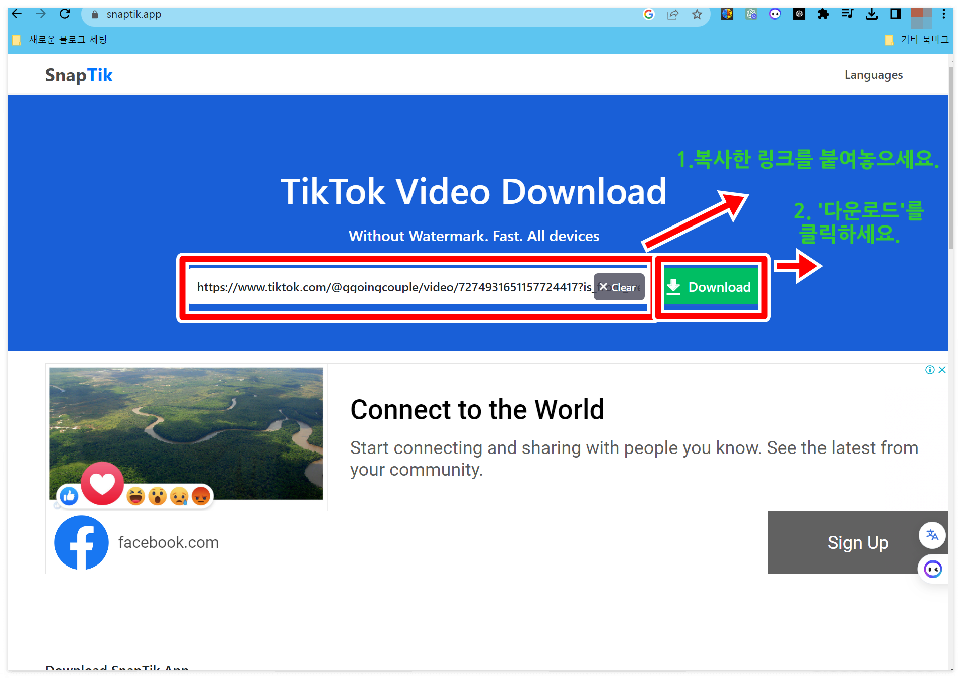 1. snap tik 사이트 (www.snaptik.app) <----- 클릭